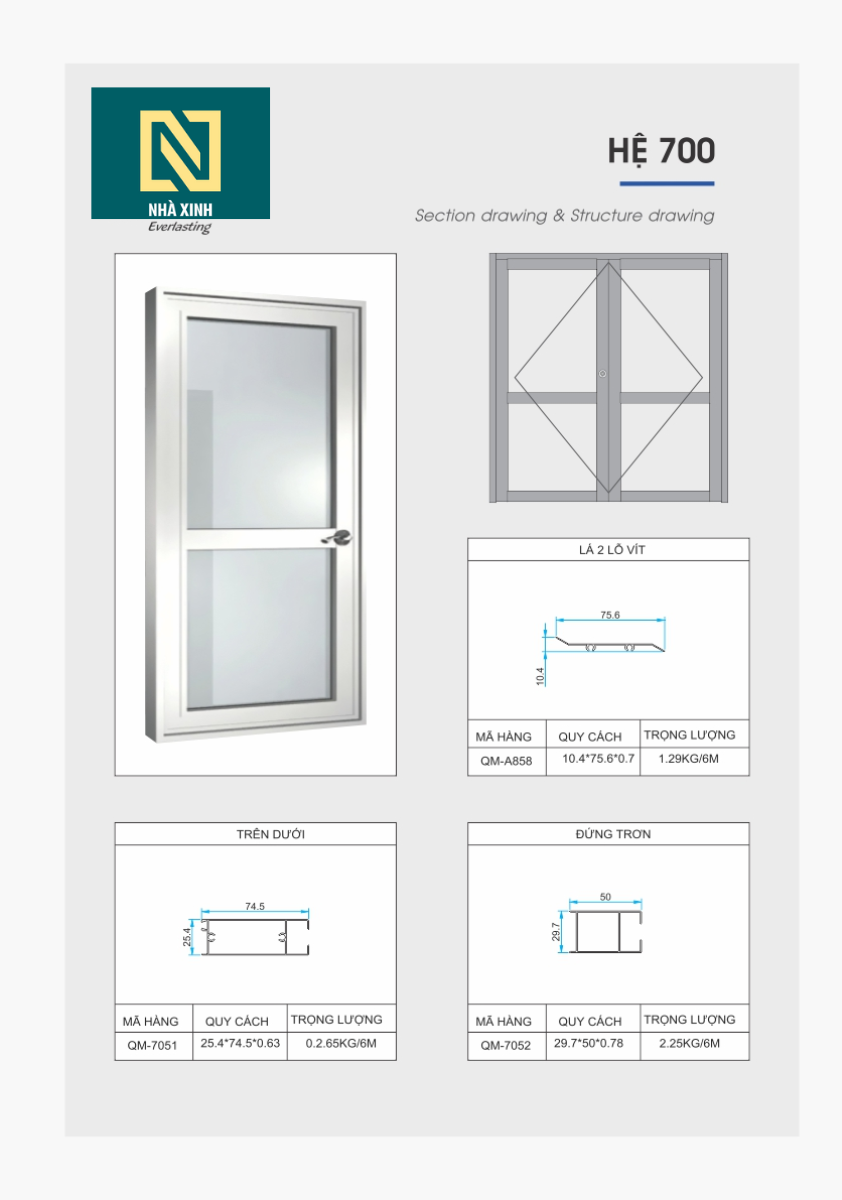 - Hệ 700 tức là thanh nhôm khi làm việc như thanh dầm thì đoạn giới hạn võng 700mm.